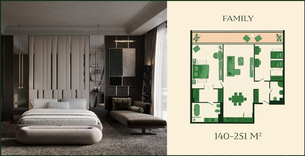 ▪️ Просторные резиденции с двумя спальнями: до 125 м²