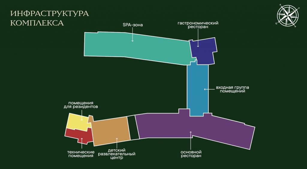 Это первый в стране проект, где гастрономия стала фундаментом сервиса. Концепцию «шведского стола» и работу брендовых ресторанов курирует команда Аркадия Новикова.